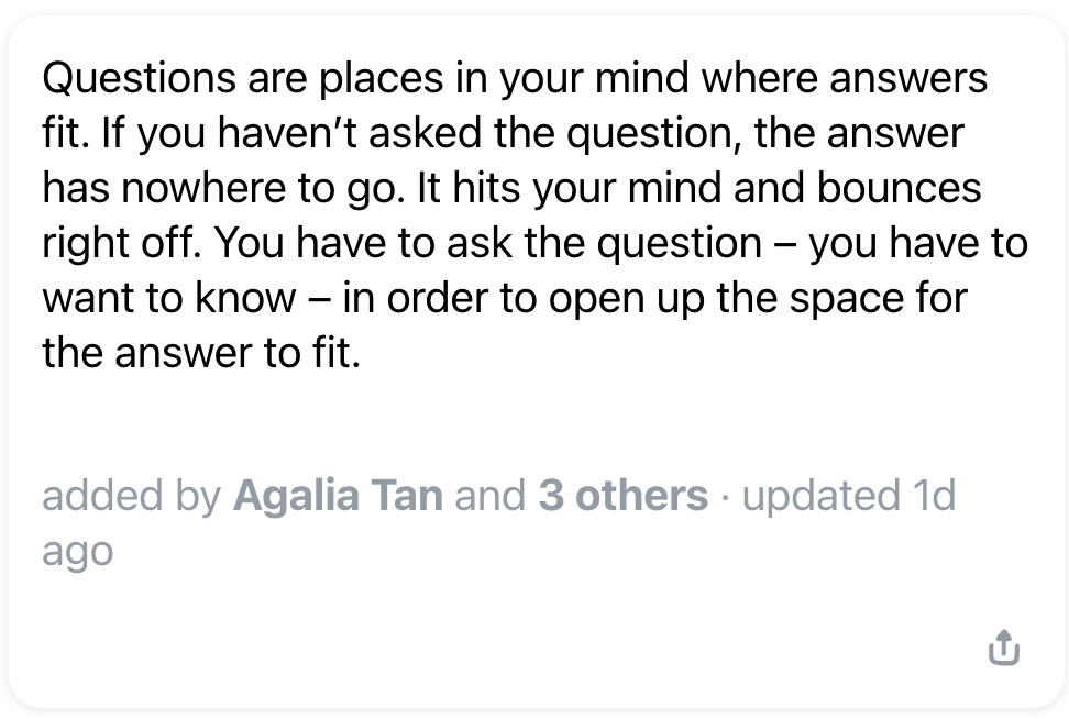 Asking questions is one of the most frequently used tools in my toolbox as a consultant. Good questions are the catalyst for interesting conversations or, as put beautifully by Clayton Christensen: